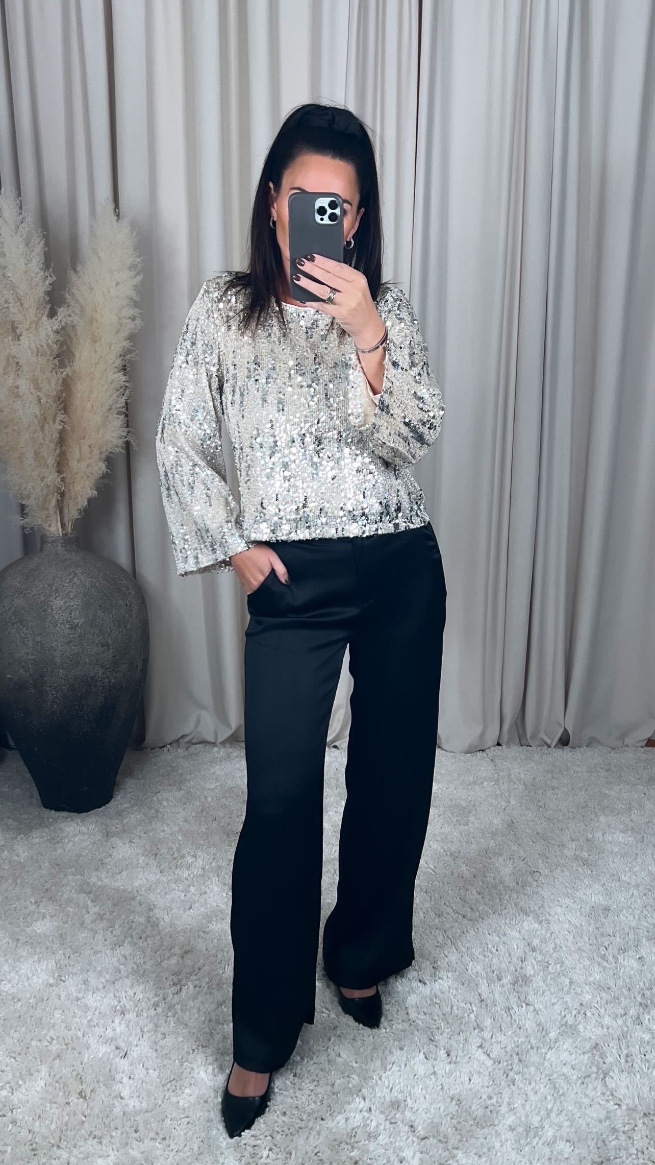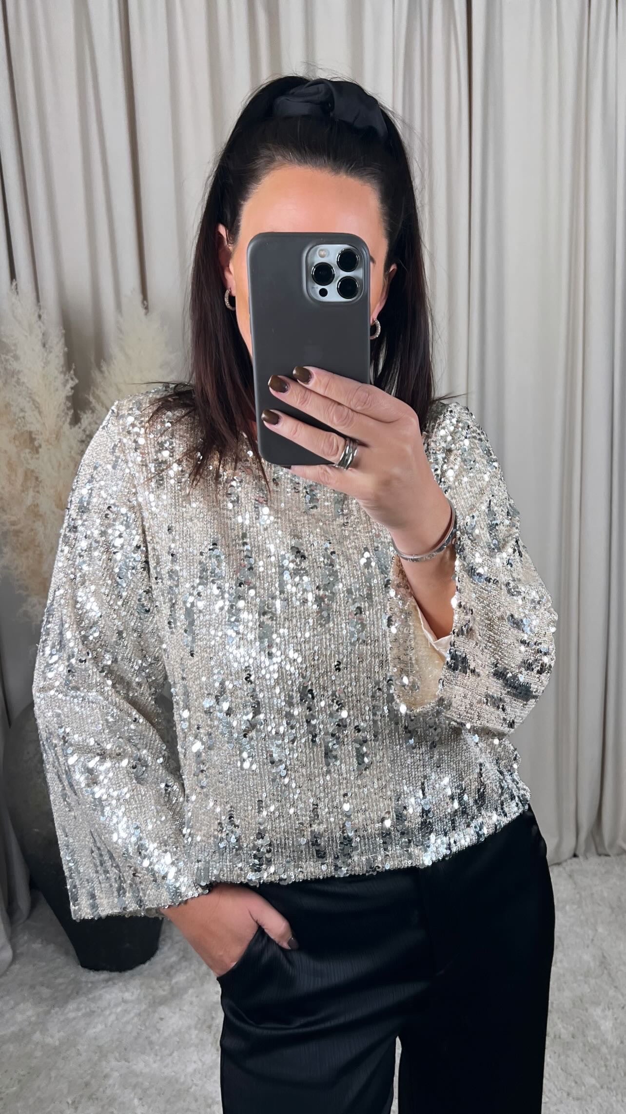 Mjöf fallegur og elegant pallíettu bolur með góðri teygju í efninu