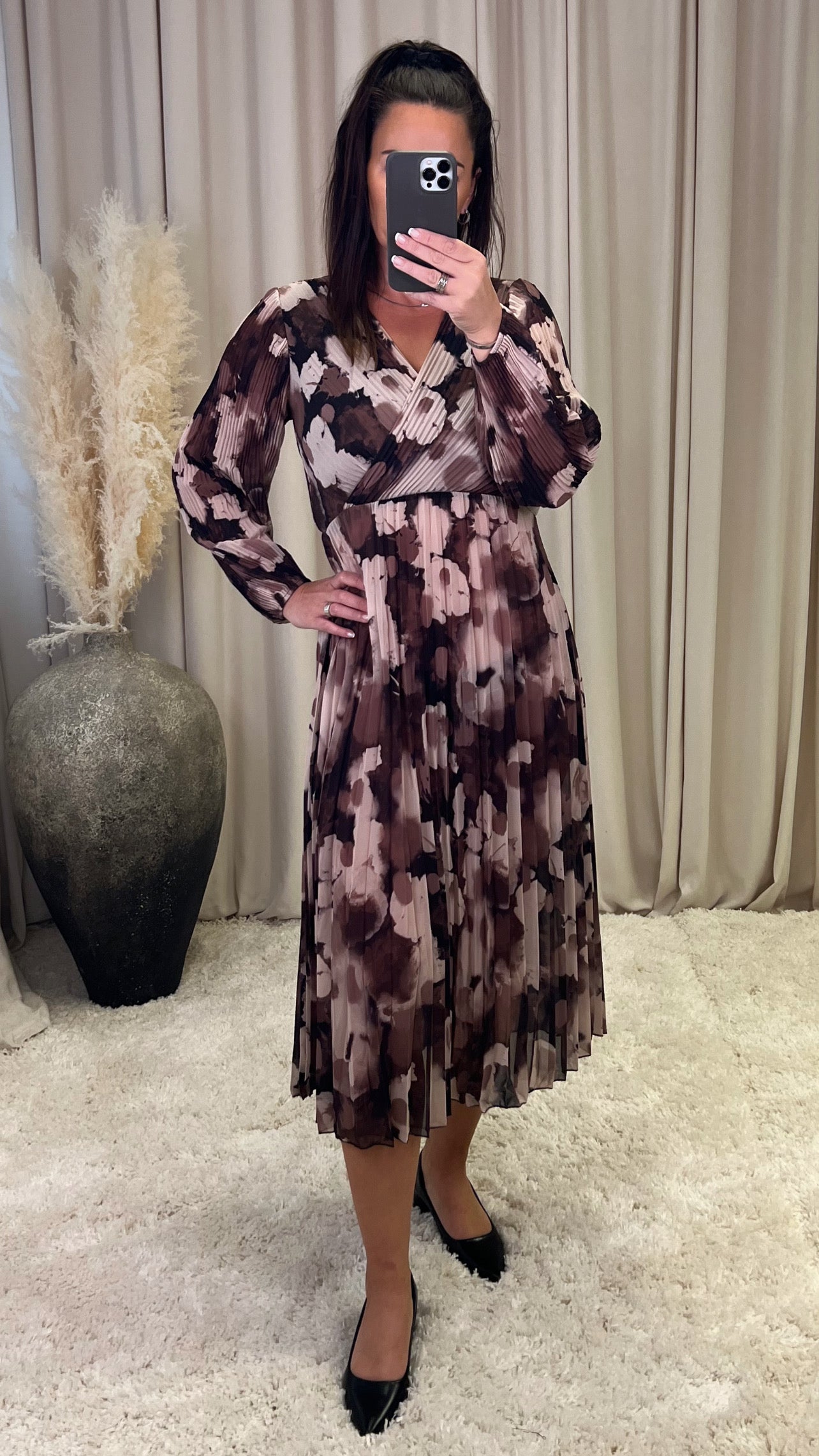 Fallegur síður kjóll með V hàlsmàli og síðum ermum.