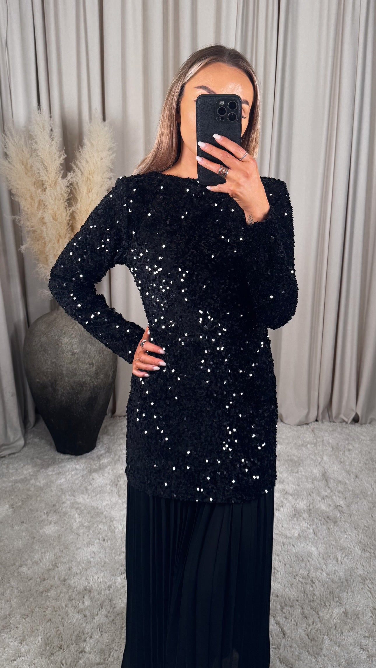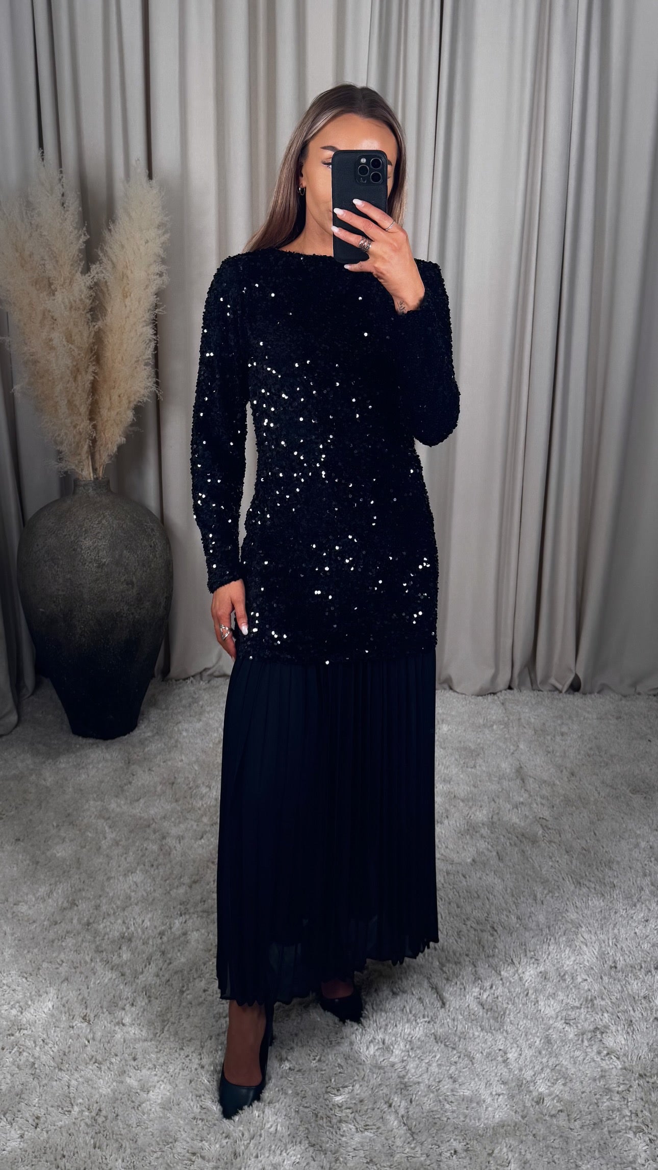 Fallegur pallíettu kjóll með chiffon pilsi undir