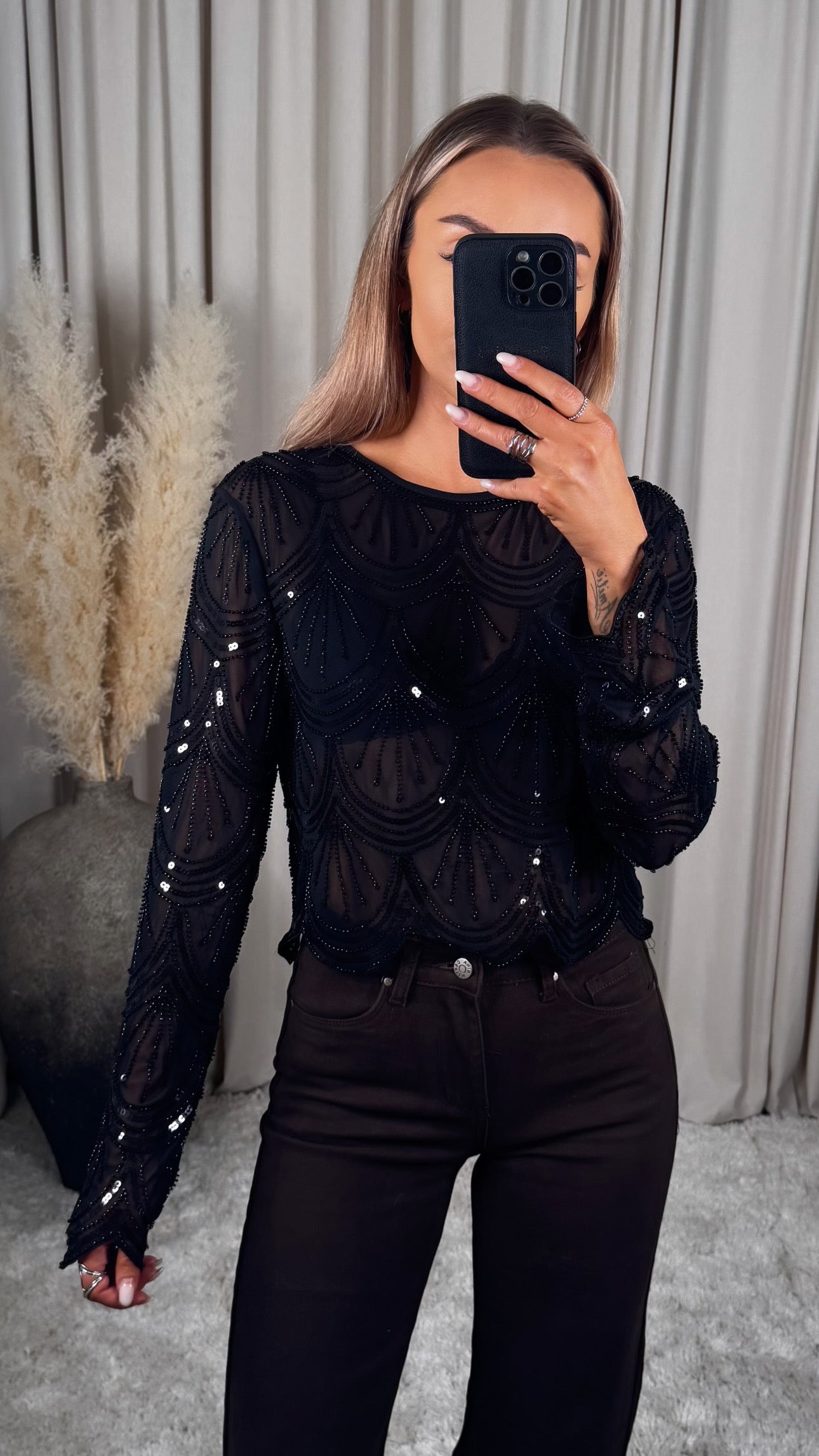 Fallegur pallíettu bolur úr teygjanlegu mesh efni