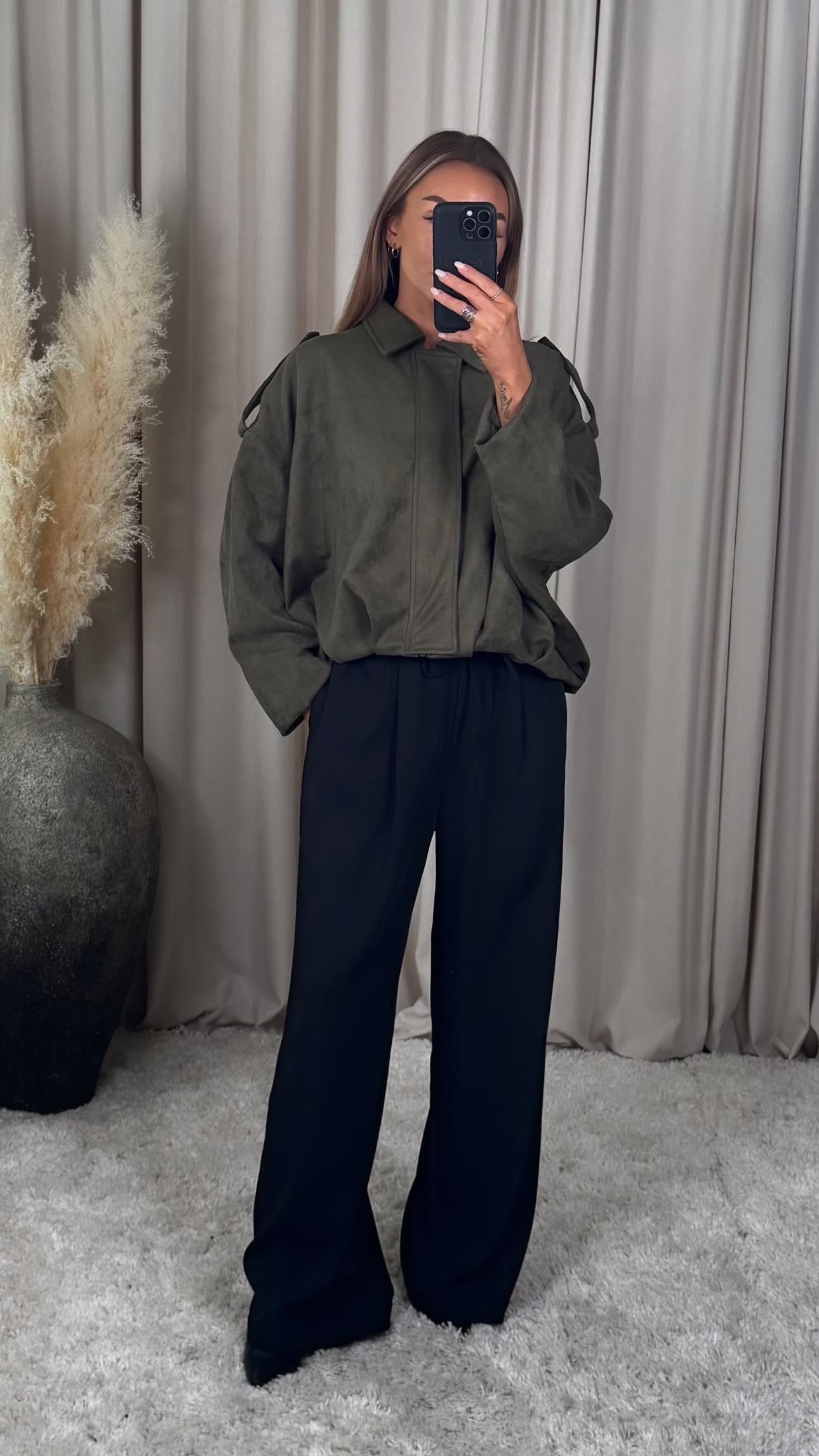 Fallegur bomber jakki úr vegan rúskinni, jakkinn er smá oversized i sniði