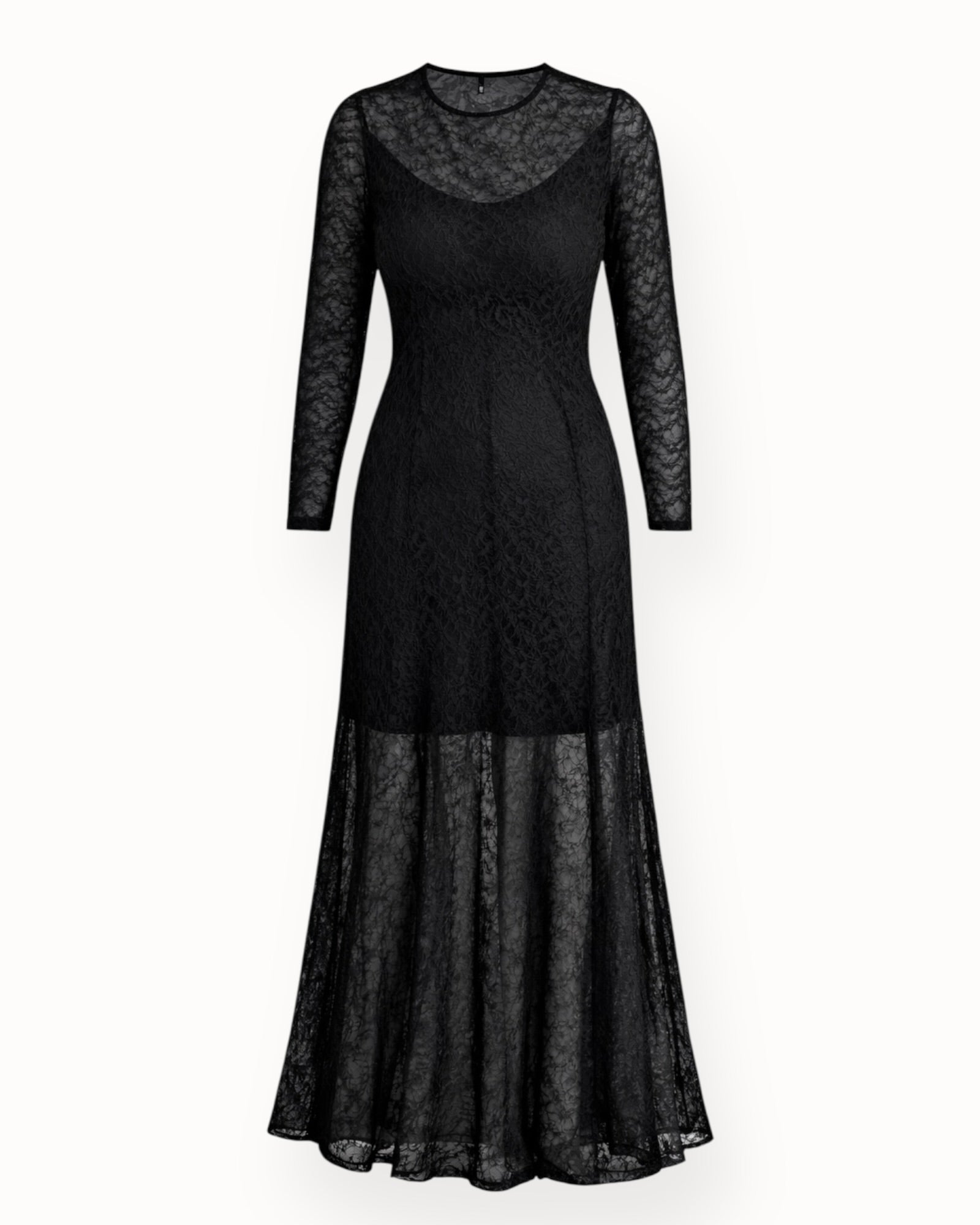 Fallegur blúndukjóll úr góðu teygjuefni, það er undirkjóll undir blúndunni sem er einnig mjög teygjanlegur og mjúkur.