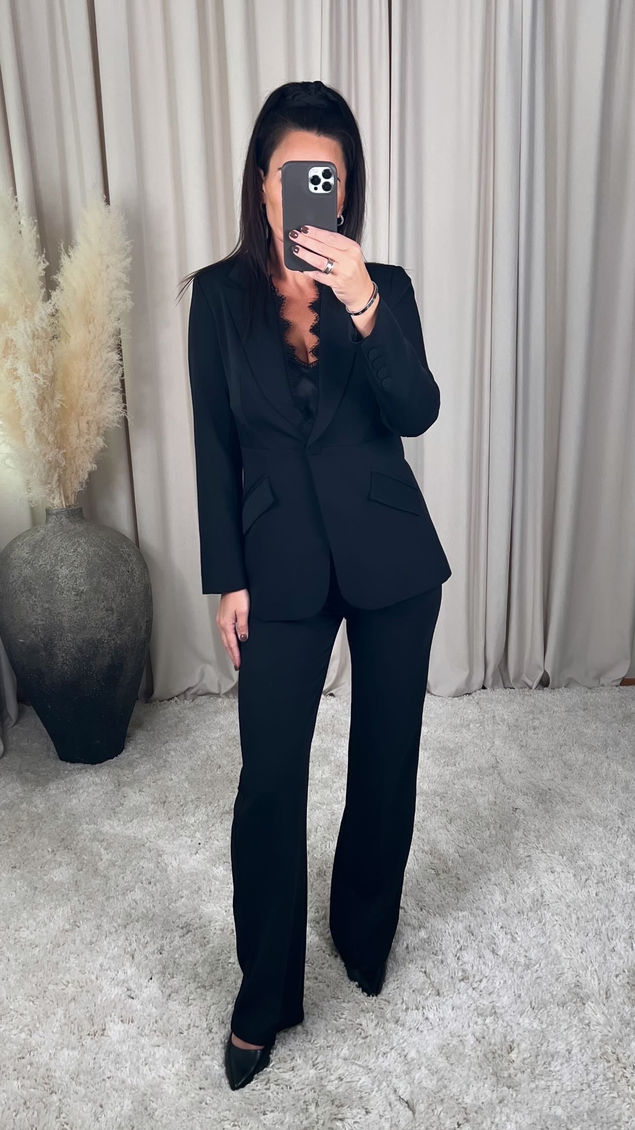 Mjög fallegur dragtar jakki með blúndu renning á bakinu sem nær einnig að framan það er einnig blunda í hálsmáli. Það er örlítil teygja í efninu.