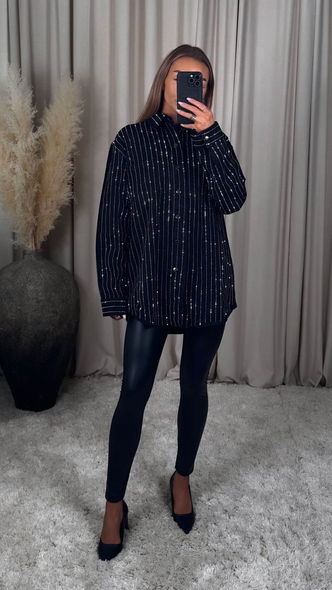 Falleg galla skyrta með steinum, skyrtan er oversized í sniði