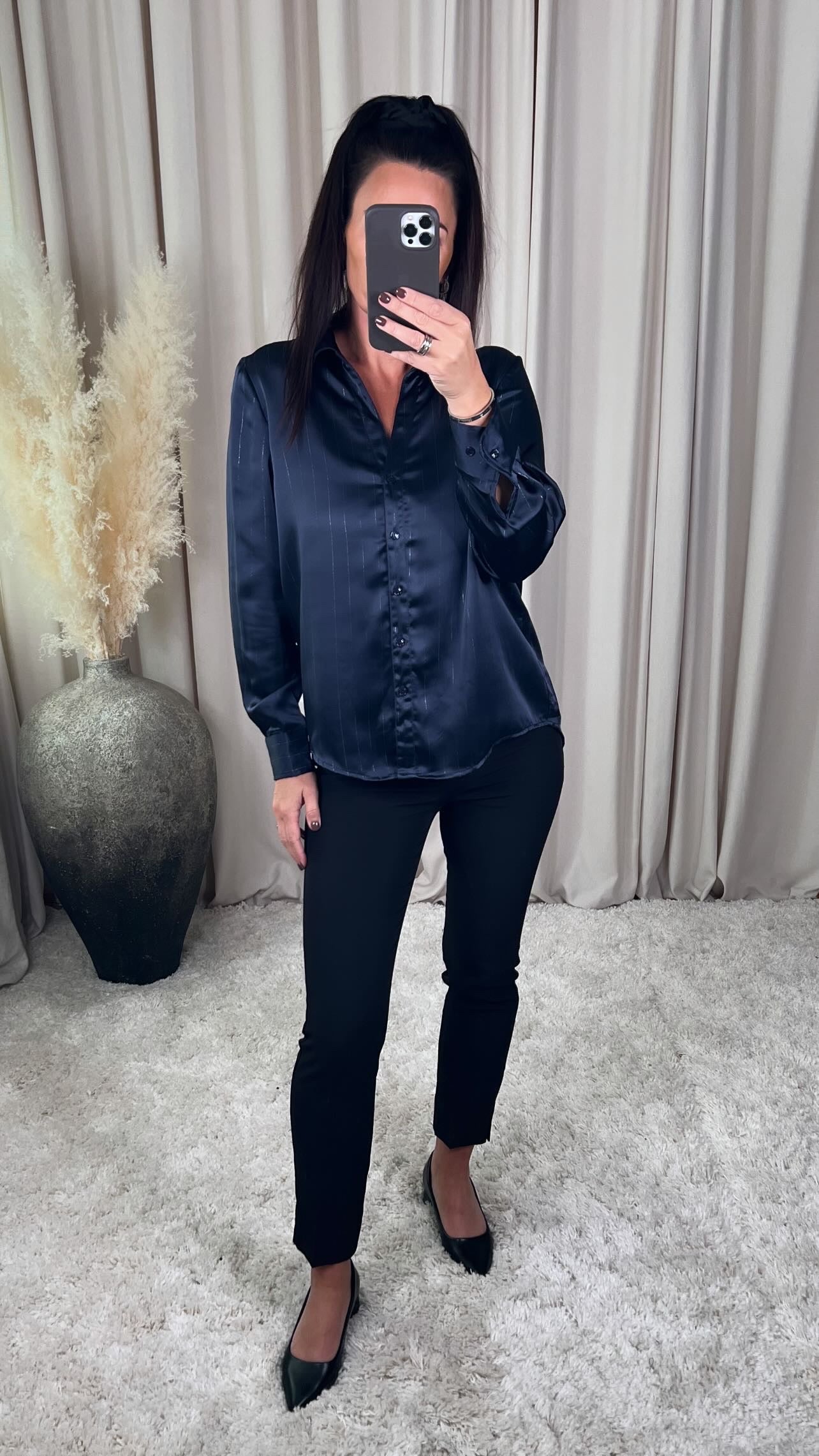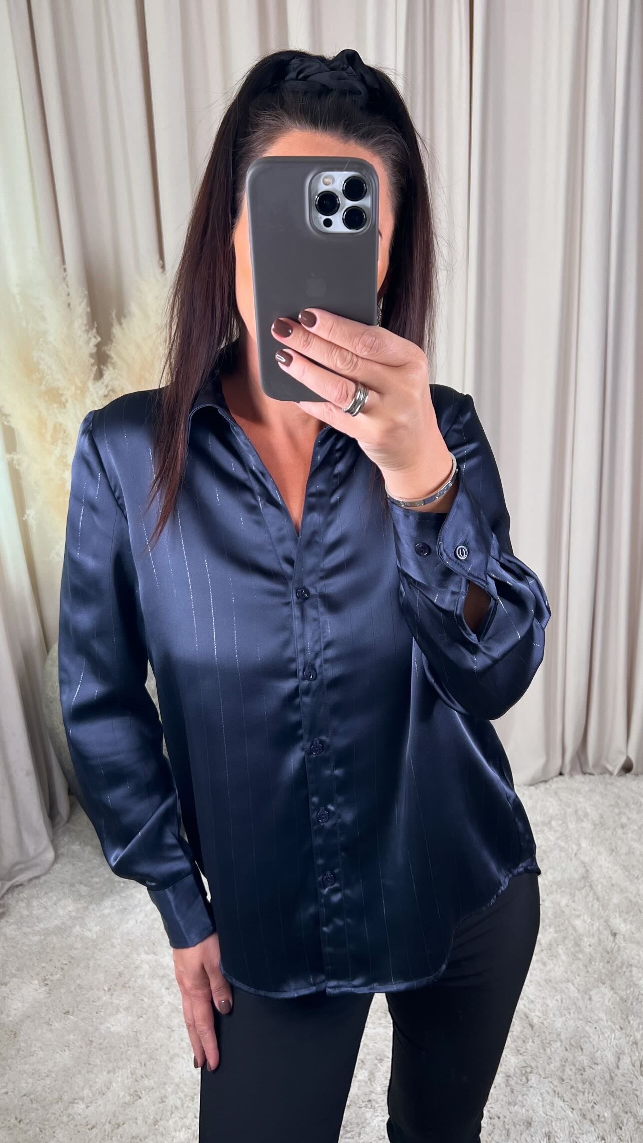 Mjög falleg satín skyrta með örfínum silfur þráðum í efninu.