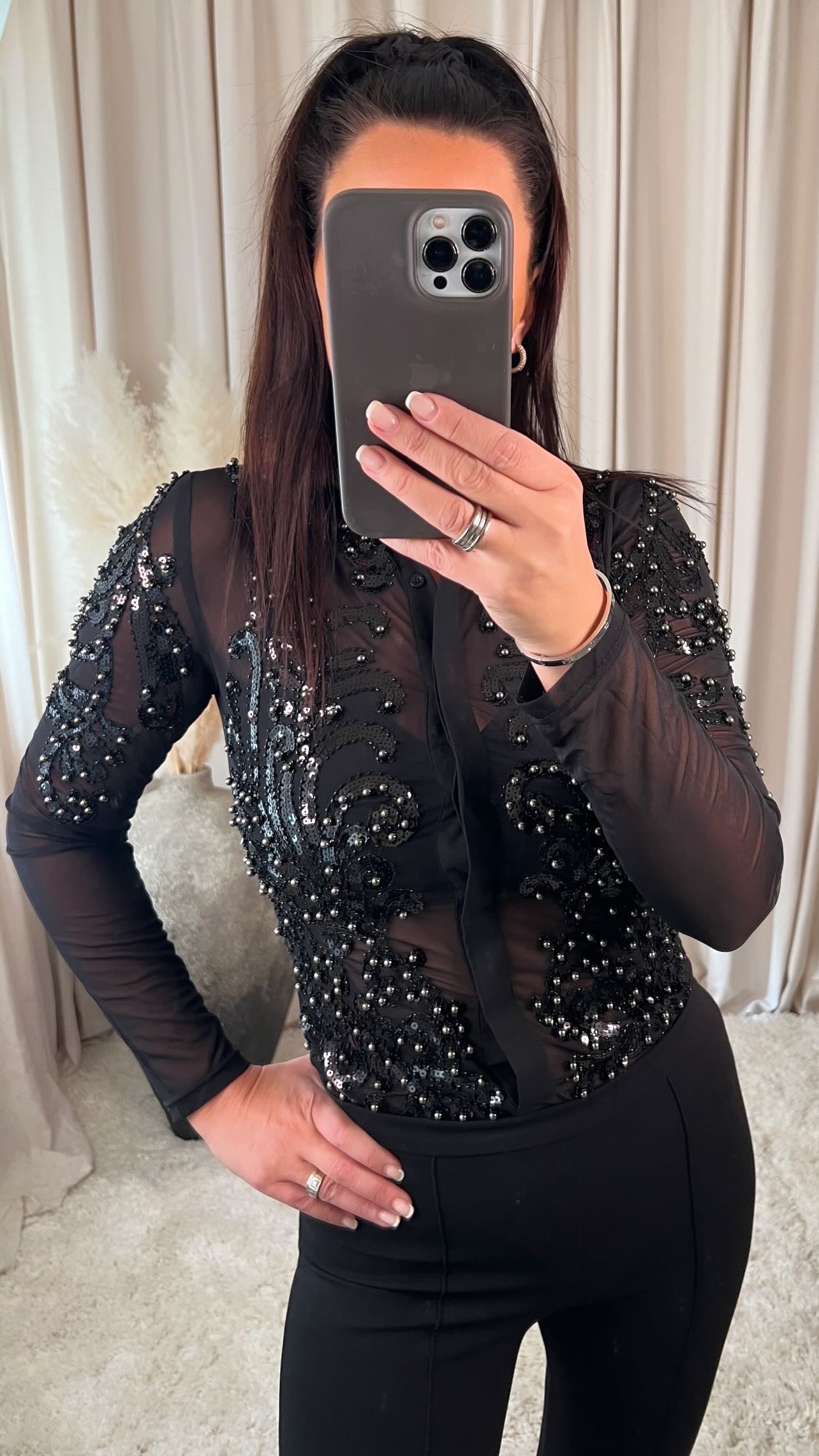 Falleg pallíettu samfella úr mesh efni