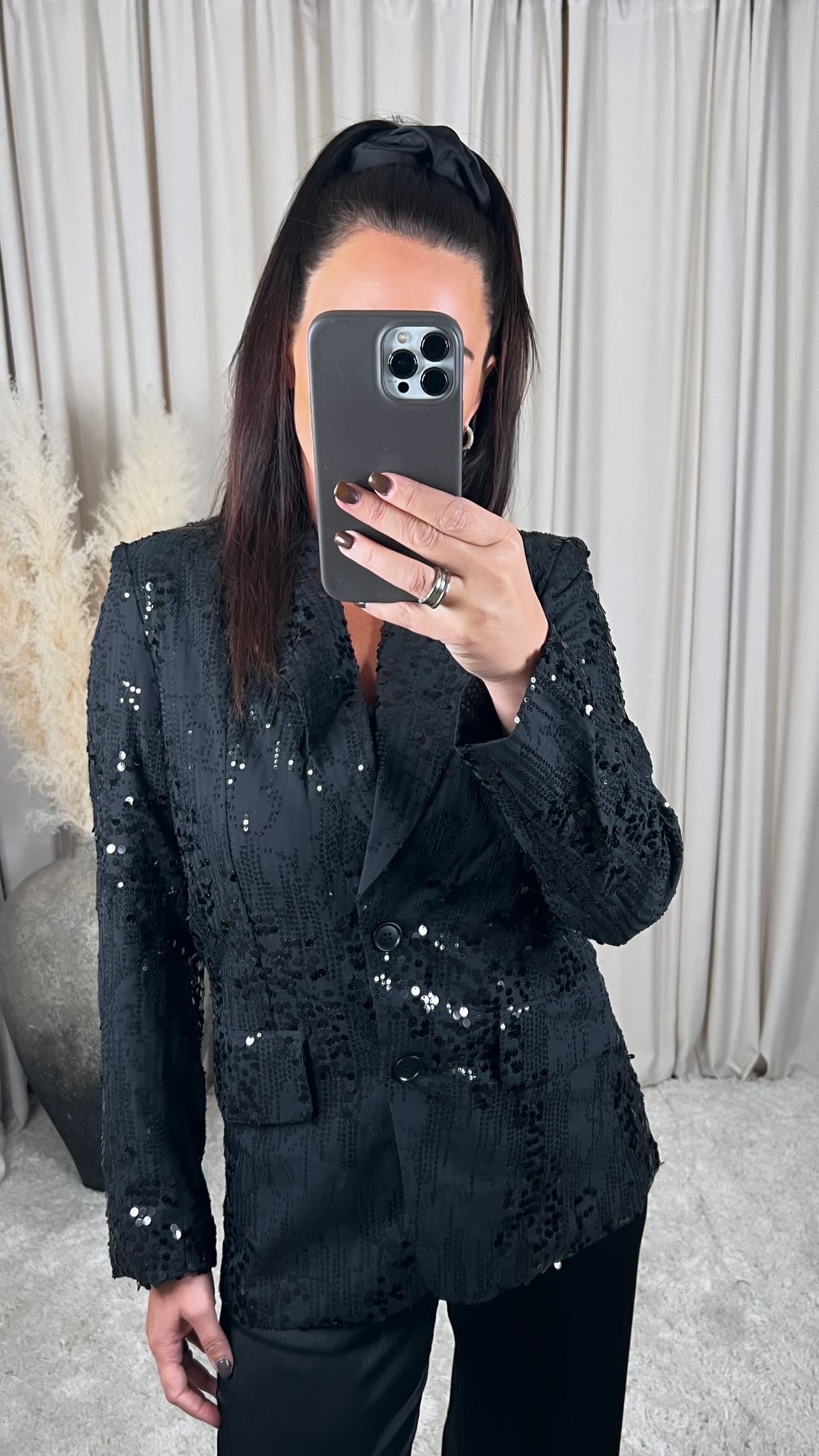 Virkilega flottur pallíettu jakki úr 100% viscose.það er ekki teygja í efninu.